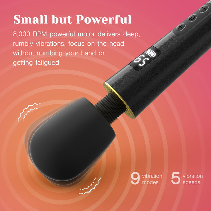 Pequeño pero poderoso: Potente, pero discreto, con un motor silencioso como un susurro, esta varita ofrece 9 modos intensos de vibración y 5 niveles de velocidad de la cabeza a los pies. El diseño elegante de la varita proporciona vibración focalizada en la cabeza de la varita