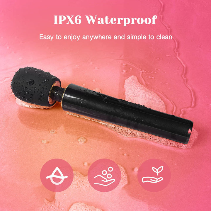 Diseño impermeable IPX6 y alimentado por USB-C: El masajeador de varita está hecho de silicona suave y materiales ABS, lo que facilita su limpieza y lo prepara para tu próxima aventura. El diseño recargable por USB significa que siempre está listo para complacer