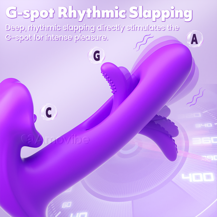 This G-spot vibrator offers an advanced rhythmic slapping function, perfectly designed to directly stimulate the G-spot. The powerful rhythmic slaps, as seen in the image, work in sync with the contours of the vibrator to deliver deep, precise pleasure. With its back-and-forth motion, it mimics a tapping sensation that hits all the right spots, ensuring maximum intensity and satisfaction. This feature is ideal for those seeking heightened stimulation that reaches deeper, typically untouched areas, intensifying every moment of your experience.